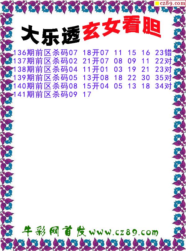 > 大乐透2025141期玄女看胆前区杀号图谜