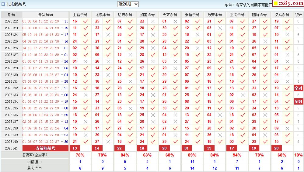 > 七乐彩141期 澳客专家杀号码预测推荐