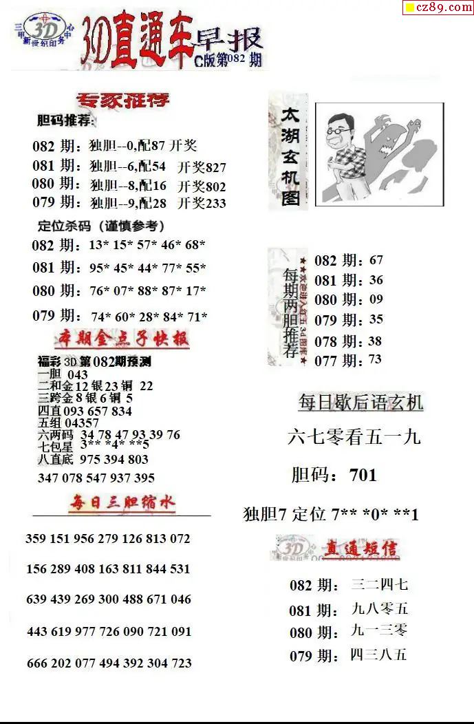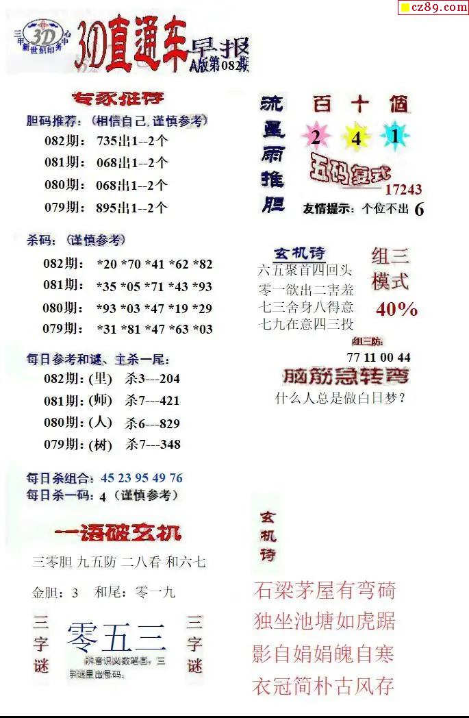 > 福彩3D2026082期直通车早报ABCD版